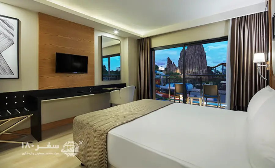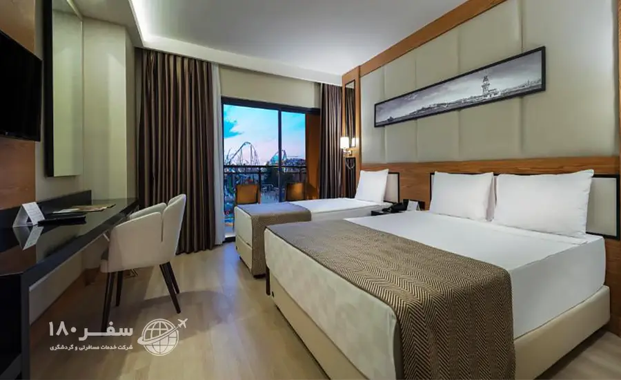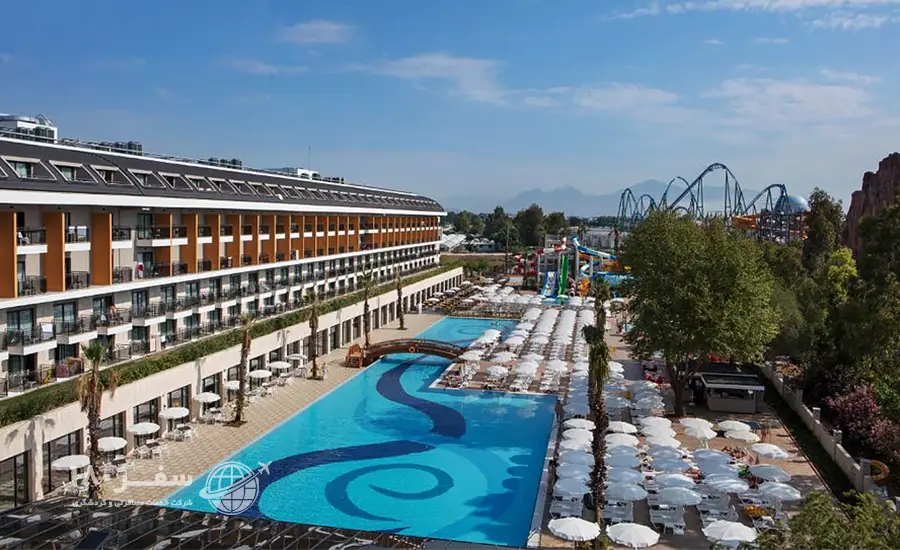 هتل زیبای آیدین بی کوئینز پالاس اند اسپا در منطقه بلک آنتالیا واقع شده است. این هتل ۵ ستاره بی نظیر فاصله اندکی تا جاذبه های دیدنی شهر آنتالیا دارد و جزو محبوب ترین هتل های منطقه به شمار می رود. هتل آیدین بی دارای ۵ طبقه و ۳۶۰ اتاق است. نزدیک ترین فرودگاه نیز مربوط به شهر آنتالیاست و حدودا ۱۹ کیلومتر فاصله دارد که از طریق شاتل فرودگاهی قابل دسترس است. از جمله امکانات پرطرفدار در هتل Aydinbey Queen’s Palace & SPA Belek Antalya می توان به رستوران، پارکینگ اختصاصی رایگان، استخر شنای روباز و سرپوشیده، مرکز سلامتی، اسپا و سالن بدنسازی اشاره کرد.
