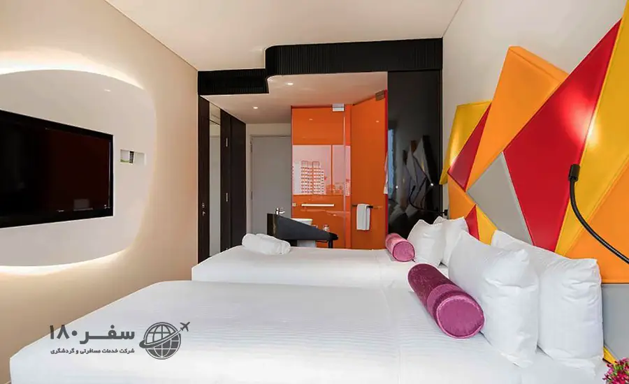 - اتاقهای دکوراسیون شده: اتاقها با دکوراسیون مدرن و امکاناتی مانند تلویزیون صفحهتخت، مینیبار، و اینترنت بیسیم تجهیز شدهاند.