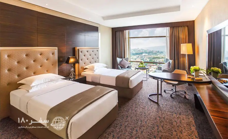 اگر نگوییم یافتن هتلی به زیبایی هتل بیلتمور Biltmore در شهر تفلیس محال است، حداقل باید بگوییم که این کار بسیار سخت خواهد بود. چرا که هتل بیلتمور به معنای واقعی کلمه با داشتن خدمات و امکانات بسیار مانند تراس آفتابگیر به صورت مبله و محوطهای برای پیکنیک، یک اقامتگاه فوقالعاده برای یک سفر فراموش نشدنی است. هر یک از اتاقهای جذاب این هتل با تسهیلات با کیفیتی همچون تهویه مطبوع، تلویزیون صفحه تخت ماهوارهای، اینترنت بیسیم رایگان و حمام اختصاصی همراه با وان هستند. برخی از این اتاقها دارای بخش نشیمن بسیار دنجی هم بوده و فرصت استراحت و آرامش را بعد از یک روز گشتوگذار در تفلیس در اختیار مهمانانشان قرار میدهند .از جذابیتهای اقامت در هتل بیلتمور تفلیس میتوان به امکان نوش جان کردن غذاهای لذیذ در رستوران این هتل اشاره کرد. همچنین جالب است بدانید که هتل The Biltmore Tbilisi Hotel دارای یک پارکینگ اختصاصی و پذیرش ۲۴ ساعته است. امکان برق انداختن کفشهایتان در این هتل ممکن است. برای رفاه بیشتر مسافران، هتل بیلتمور امکاناتی چون امکانات رفاهی بسیار خوب در اتاقهای VIP ، اجاره خودرو، آسانسور، صندوق امانات، آرایشگاه مردانه و زنانه، پاسخگویی 24 ساعته، نظافت روزانه، انبار نگهداری چمدان، صرافی، شاتل فرودگاهی، خودپرداز، خشکشویی و اتوکشی فراهم کرده است.