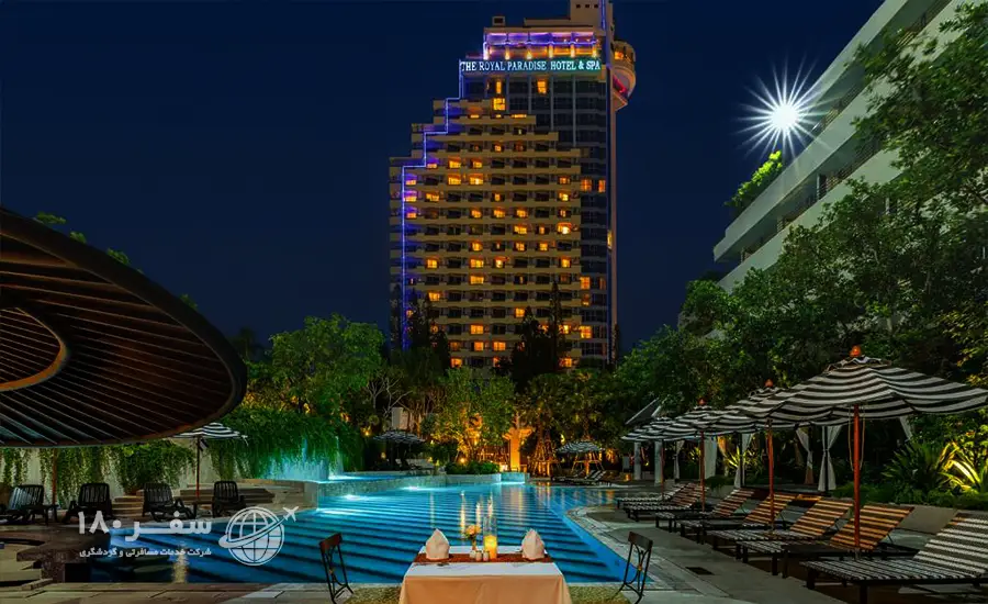 هتل رویال پارادایس هتلی ۴ ستاره، لوکس و مدرن است که در ساحل پاتونگ پوکت واقع شده است. The Royal Paradise Hotel به دلیل نزدیک بودن و دسترسی آسان به مراکز خرید و جاذبه های تفریحی پوکت مورد توجه بسیاری از مسافران قرار گرفته و از محبوبیت بالایی برخوردار است. اگر قصد خرید بلیط هواپیما و یا برنامه سفر به پوکت تایلند را داشته باشید، هتل رویال پارادایس پوکت گزینه مناسبی برای یک اقامت دلنشین به شمار می آید.