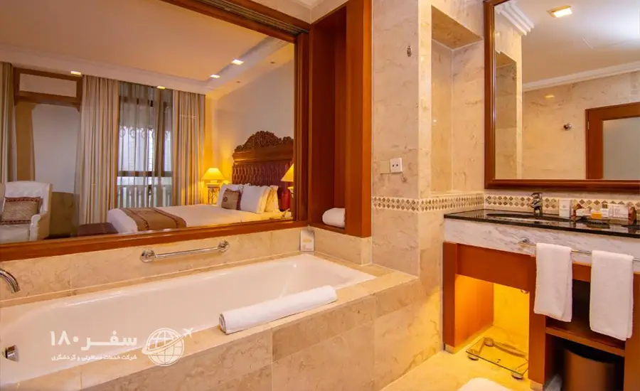 - اتاقها و سوئیتهای مجلل: اتاقها و سوئیتها با دکوراسیون شیک و امکاناتی نظیر تلویزیون صفحهتخت، مینیبار، چایساز و اینترنت بیسیم تجهیز شدهاند.