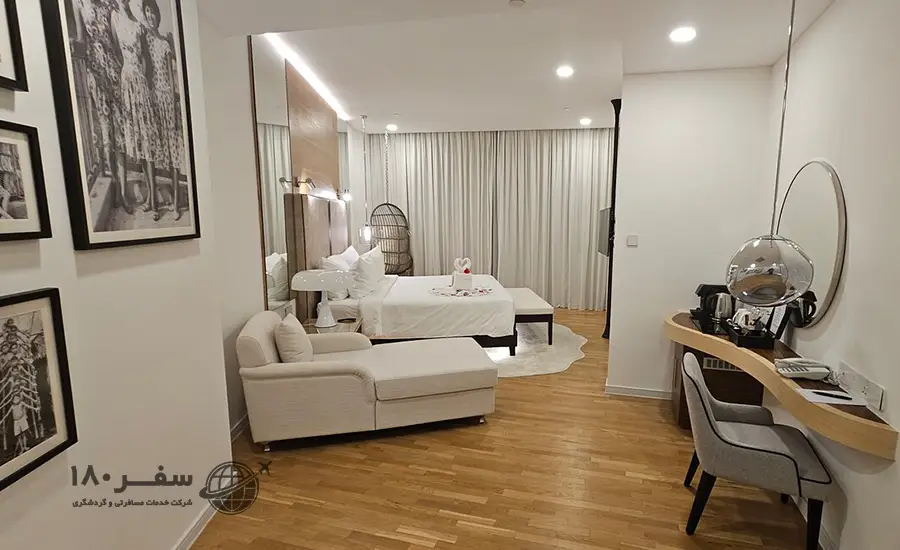 - اتاقهای مجلل و راحت: اتاقها با دکوراسیون مدرن و امکاناتی مانند تلویزیون صفحهتخت، مینیبار، و اینترنت بیسیم تجهیز شدهاند. برخی از اتاقها دارای بالکن با چشمانداز دریا یا باغ هستند.