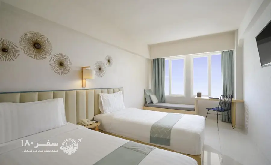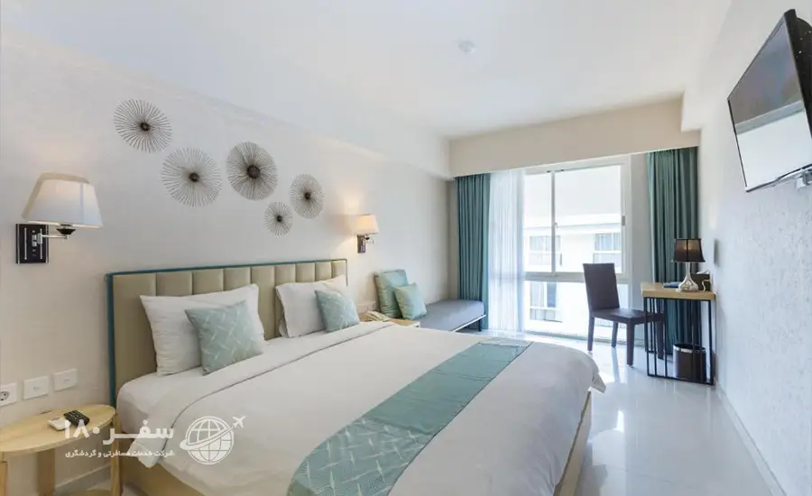 این هتل که در سال 2012 به بهره برداری رسید 88 اتاق دارد. و شامل اتاق های خانوادگی با مزایای رایگان ، اتاق دو تخته سوپر لوکس با مزایای رایگان ، اتاق دو تخته دولوکس ، اتاق دولوکس کینگ و اتاق دو تخته سوپر دلوکس با مزایای رایگان میباشند. هتل در موقعیت 10 دقیقه پیاده روی از ساحل کوتا ، 5 دقیقه پیاده روی تا ساحل جرمن و ساحل سگرا برخوردار است. همچنین کلیه اتاقها مجهز به حمام به همراه حوله ، سشوار و لوازم بهداشتی رایگان ، تلفن ، مینی بار ، سیستم تهویه مطبوع ، صندوق امانات و کتری برقی میباشند.