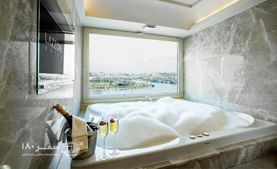 هتل لازونی در یکی از جذابترین مناطق استانبول، منطقه شاخ طلایی، و در کنار مرکز کنگره خلیج واقع شده است. این موقعیت عالی فاصله هتل لازونی را با شهر قدیمی استانبول بسیار کم کرده است. بعلاوه گردشگران و خریداران بلیط هواپیما استانبول در طول اقامت در این هتل چشم انداز زیبایی به منطقه تاریخی گلدن هورن یا شاخ طلایی از تراس هتل خواهند داشت.