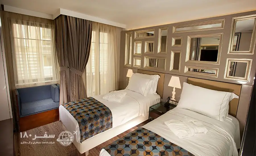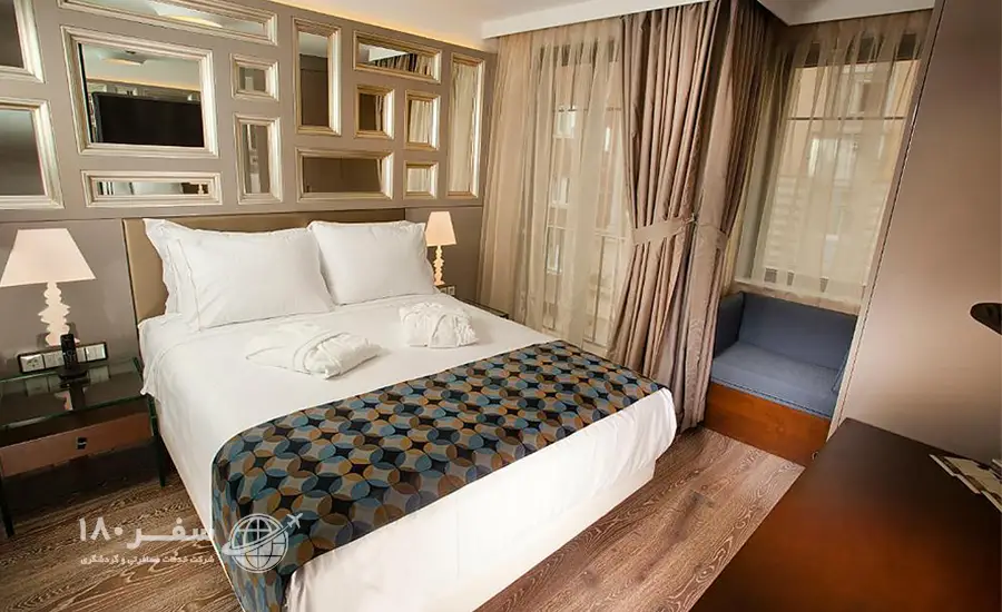 اتاقهای تر و تمیز این هتل که دارای تختهای آنتیباکتریال، اینترنت بیسیم رایگان، تهویه مطبوع، مینیبار، تلویزیون صفحه تخت و حمام اختصاصی همراه با حوله و دوش هستند، تمامی شرایط لازم را برای رقم خوردن آسایش خریداران بلیط هواپیما استانبول به خوبی فراهم آوردهاند. جالب است بدانید که پنجره این اتاقهای عایق صدا بوده و از این رو فضای داخلی آنها بسیار دنج است. کف همه اتاقهای هتل به خوبی با کفپوشهایی پوشیده شده است تا تداعی کننده گرما و صمیمیت خانه باشد.
