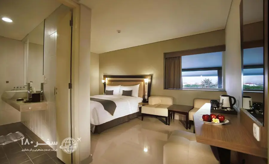 هتل نئو کوتا جلانتیک بالی از هتل‌های ۳ ستاره شهر بالی است. این هتل به قدری زیبا و چشم نواز است که شما اصلا باور نمی‌کنید فقط ۳ ستاره دارد. در واقع، بهتر است بگوییم که Hotel Neo – Kuta, Jelantik امکاناتی در حد و اندازه‌های یک هتل ۴ یا ۵ ستاره را با هزینه بسیار پایین‌تری در اختیار شما قرار خواهد داد تا اگر قصد خرید آنلاین بلیط هواپیما بالی را داشتید، دیگر هیچ دغدغه‌ای مبنی بر یافتن اقامتگاه ارزان قیمت در دل خود نپرورانید.با دکوراسیونی دلنشینی که اتاق‌های هتل نئو کوتا جلانتیک بالی دارند، اقامت در هتل Hotel Neo – Kuta, Jelantik Bali بسیار شیرین‌تر و لذت بخش‌تر می‌شود. اگر چشمی در این اتاق‌ها بچرخانید، امکاناتی مثل گاو صندوق، چای ساز، قهوه ساز، تلویزیون صفحه تخت، دستگاه پخش دی وی دی و حمامی همراه با سشوار و لوازم بهداشتی رایگان در آنها خواهید دید. امکانات فوق العاده خوب و با کیفیتی که استفاده از آنها باعث افزایش رفاه و راحتی شما در طول سفرتان خواهد شد. لازم به ذکر است هوای داخل این اتاق‌ها توسط سیستم تهویه مطبوع خنک می‌شود. ضمنا، بد نیست این را هم بدانید که امکان استفاده از سرویس اینترنت بی سیم رایگان در اتاق‌های هتل نئو کوتا جلانتیک وجود دارد.