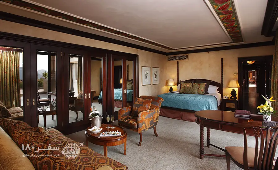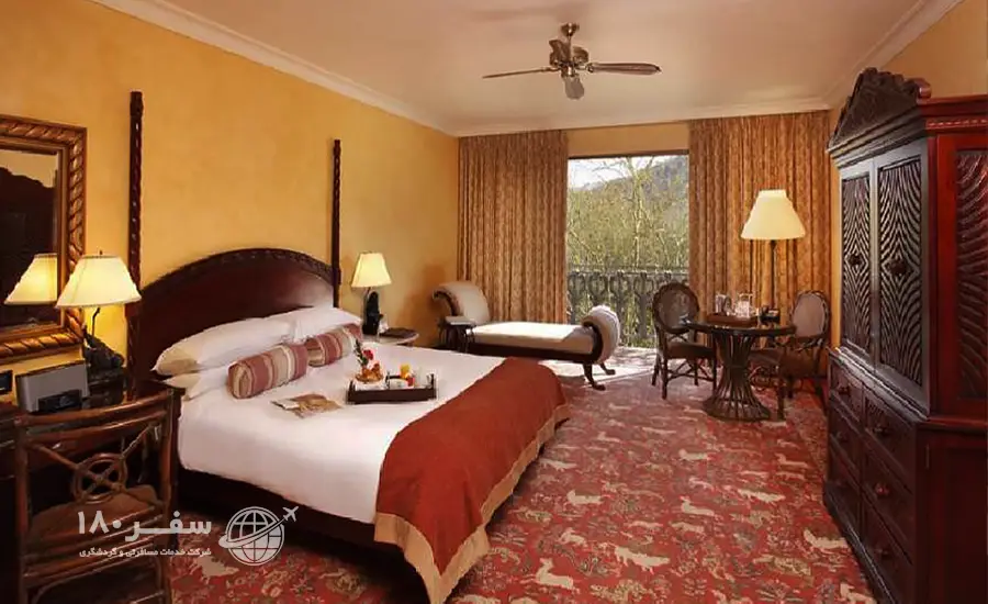 با سقفهای زیبا و کاشیهای باستانی در کف از مقیاس و عظمت شاهکاری به این بزرگی شگفت زده خواهید شد. همه جزئیات از کاشیهای معرق لابی و ترکیب ظریف رایحههای گیاهی گرفته تا چایهای عالی هتل به دقت در نظر گرفته شده است و چشم هر بینندهای را خیره میکند. وقتی در هتل The Palace of the Lost City at Sun City Resort اقامت دارید، دنیایی از حیات وحش را در آستانه خانه خود کشف خواهید کرد. دره امواج، پارک آبی سان سیتی و زمین گلف شهر گمشده از جاهای دیدنی نزدیک هتل هستند که توجه گردشگران بسیاری را به سوی خود جلب میکنند. در صورت خرید بلیط هواپیمای خارجی و سفر به آفریقای جنوبی با اقامت در هتل مجلل پالاس آف لاست سیتی سفر بی نظیری را تجربه خواهید کرد.