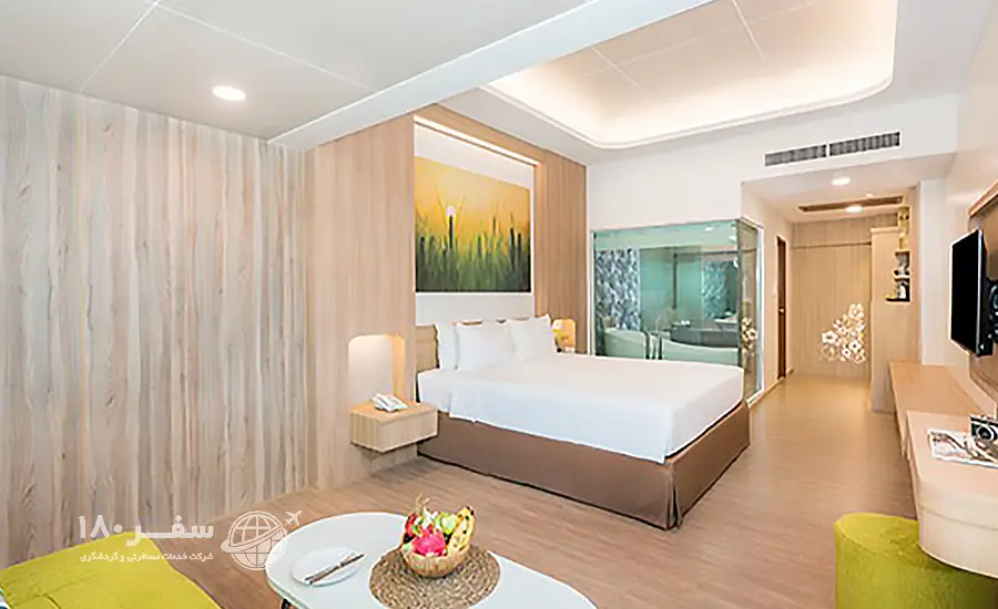 - اتاقهای راحت: اتاقها با دکوراسیون مدرن و امکاناتی نظیر تلویزیون، یخچال و اینترنت رایگان تجهیز شدهاند. برخی از اتاقها دارای بالکن یا تراس با نمای زیبا هستند.