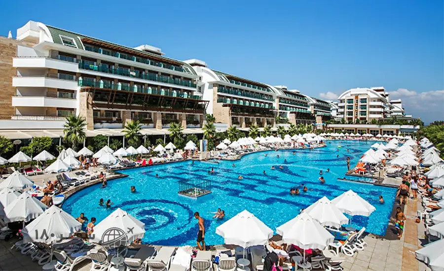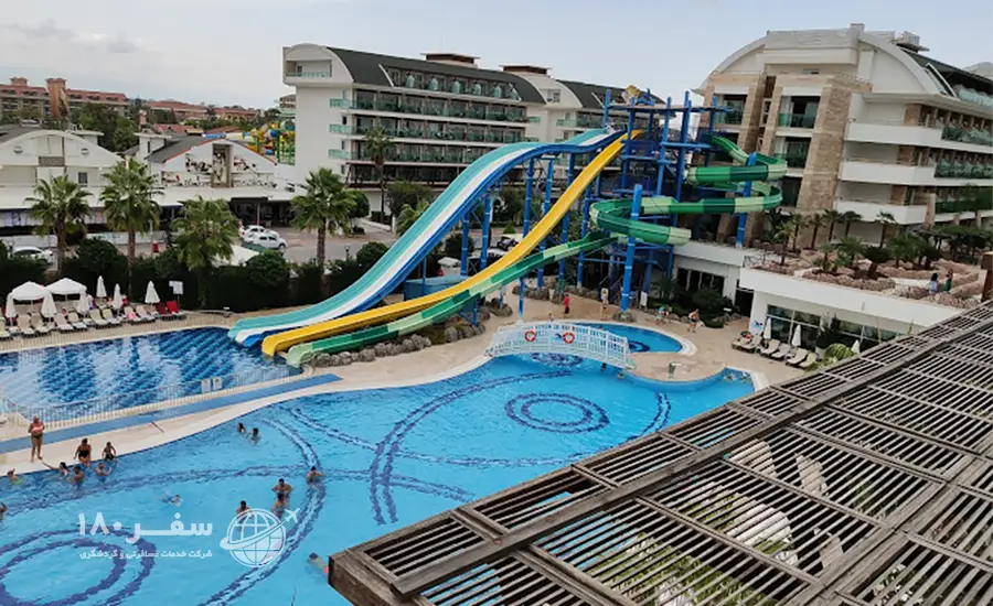 هتل کریستال واترورلد ریزورت اند اسپا یکی از هتلهای نزدیک ساحل در شهر آنتالیا است که اقامتی لوکس را برای مهمانانش رقم میزند. نام این هتل برگرفته از آبهای شفاف دریای مدیترانه است زیرا این هتل در امتداد کرانه دریا واقع شده است. همین موقعیت مکانی مزیت ویژهای به هتل داده به طوری که ۵۰۰ متر از ساحل شنی جزو محدوده اختصاصی این هتل به حساب میآید. تفریح در کنار دریا و ساحل فقط بخشی از لذتهای اقامتی این هتل هستند، هیجانی که در استخرهای روباز و پارک آبی هتل کریستال واترورلد ریزورت اند اسپا آنتالیا تجربه میشود جزو فراموشنشدنیترین خاطرههای سفرتان خواهند بود. این پارک آبی بزرگ مجهز به سرسرههای متعددی است که مناسب هر سن و سالی هستند. این هتل ۵ ستاره به غیر از ۳ استخر روباز، استخر سرپوشیده، سالن اسپا، جکوزی، حمام و سالن تناسب اندام نیز دارد و برای تفریحات ورزشی میزهای تنیس و بیلیارد، محوطه گلف و همچنین بولینگ فراهم شده تا لحظات خوشی را برایتان رقم بزنند.