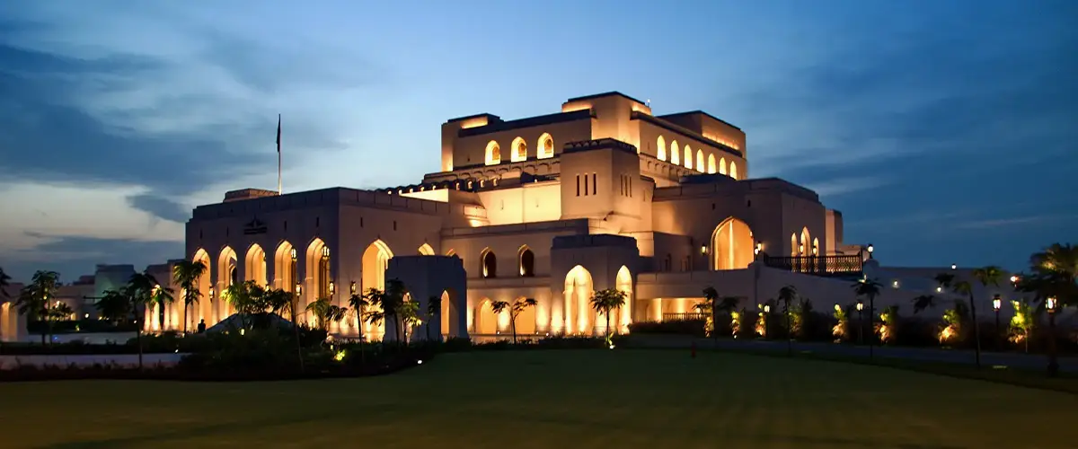 - قصر رسمی سلطان عمان با معماری زیبا و باغهای اطراف.